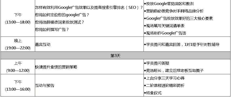 3-4個月的互動式谘詢,我們會帶著學員,輔助其一步步落地,讓學員不僅“學到”、“悟到”,最重要的是“做到 2. 對象聚焦,課程隻針對外貿老板 我們講的是營銷管理方麵的課程,此課程隻適合外貿老板。 3. 嚴格篩選製度,確保課程品質 為了保證課程的高品質及內容的有效性,對於分享嘉賓我們也有著嚴格的篩選製度。 |