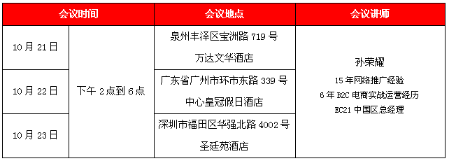 第一頁網絡科技10月份線下外貿研討(培訓)會議預告
