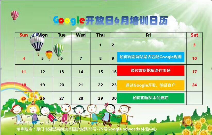 为æ´å¥½å°æå¡å¤è´¸ä¼ä¸ï¼æé æ²éçå¹³å°ï¼åæèµ·ï¼ç¬¬ä¸é¡µå°æ¯å¨äºå®ä¸ºå¼æ¾æ¥ï¼14:00--17:00å¨Google AdWordsä½éªä¸å¿åæ¶è¿è¡ä¸»é¢è®²åº§ï¼æ¯å¨é½ææ°çç¹ï¼æ¬¢è¿å¤è´¸äººåæ¥äº¤æµå¦ä¹ ã