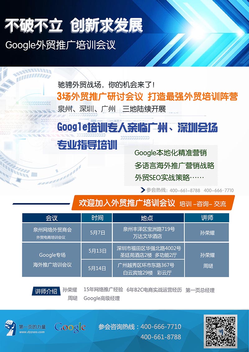 Googleå¤è´¸æ¨å¹¿å¹è®ä¼è®®5ææ³å·ãæ·±å³ã广å·ä¸å°éç»å¼å±