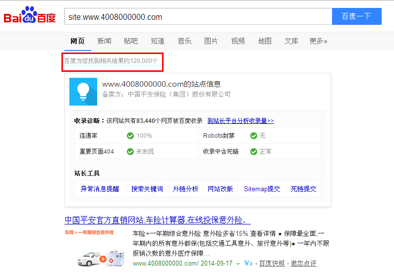 平安官網:之前百度首頁的自然排名均被pingan.com域名占據,先我方操作網站4008000000.com排名進入首頁
